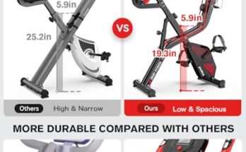 This Pleny folding bike brings a small-space solution with a 6.6 lb flywheel and a 330 lb capacity. The X-frame design folds up to save space. It includes back support and a cushioned seat, which I find helpful for long beginner sessions. The resistance is magnetic with 8 levels, ideal for steady cardio. If you need the best indoor cycle under $500 and live in a studio or dorm, a folding design can be a lifesaver.