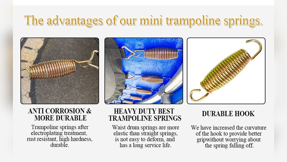 High-quality springs last longer and perform better. Cheap springs can stretch out or break early. Look for springs made of strong, rust-resistant materials. Good springs keep tension and bounce well over time. Investing in quality means fewer replacements and safer jumping.